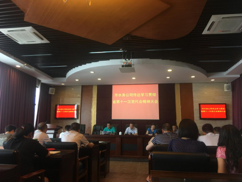 2017年6月9日下午,市水務公司黨委組織全體中層及以上干部及黨務工作人員共46人在公司二會議室召開了省十一次黨代會精神宣貫會。會議由黨委副書記李濤主持。